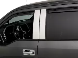 Add a custom look to your truck with bright polished stainless steel or Black Platinum B-pillar trim. Bright Stainless Steel B-Pillar without Keypad Trim, Super Cab and Super Crew Cab.