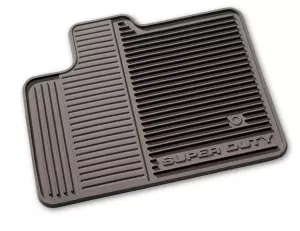 Front Set, Ebony with Super Duty Logo. The deep grooves and raised ridges in these heavy-duty mats catch and hold snow- slush and mud- while protecting the vehicle carpeting. Nibbed backing and driver-side positive retention help keep mats in place.