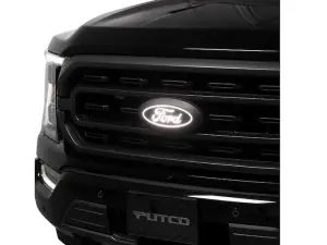 Add to the great looks of your F-150 with a lighted Ford Oval grille emblem. Replaces factory badge with a Black Ford Oval with LED light. Kit does not include camera - it is for vehicles already equipped with a front camera. Simple Plug and Play installation – no splicing wires. Direct fit – uses factory mounting points. IP69K Rated – resists dust, high temperatures and high water pressure.